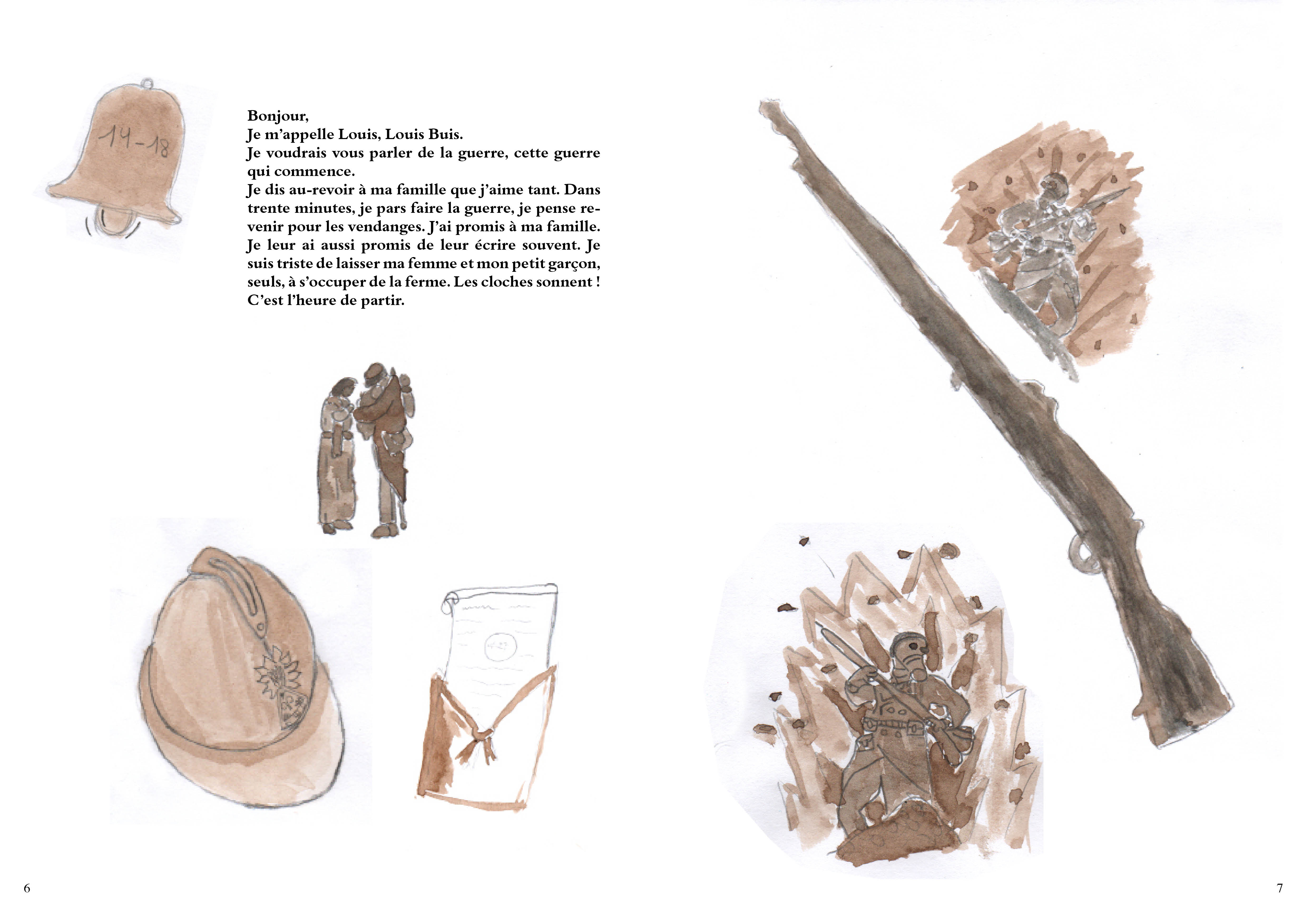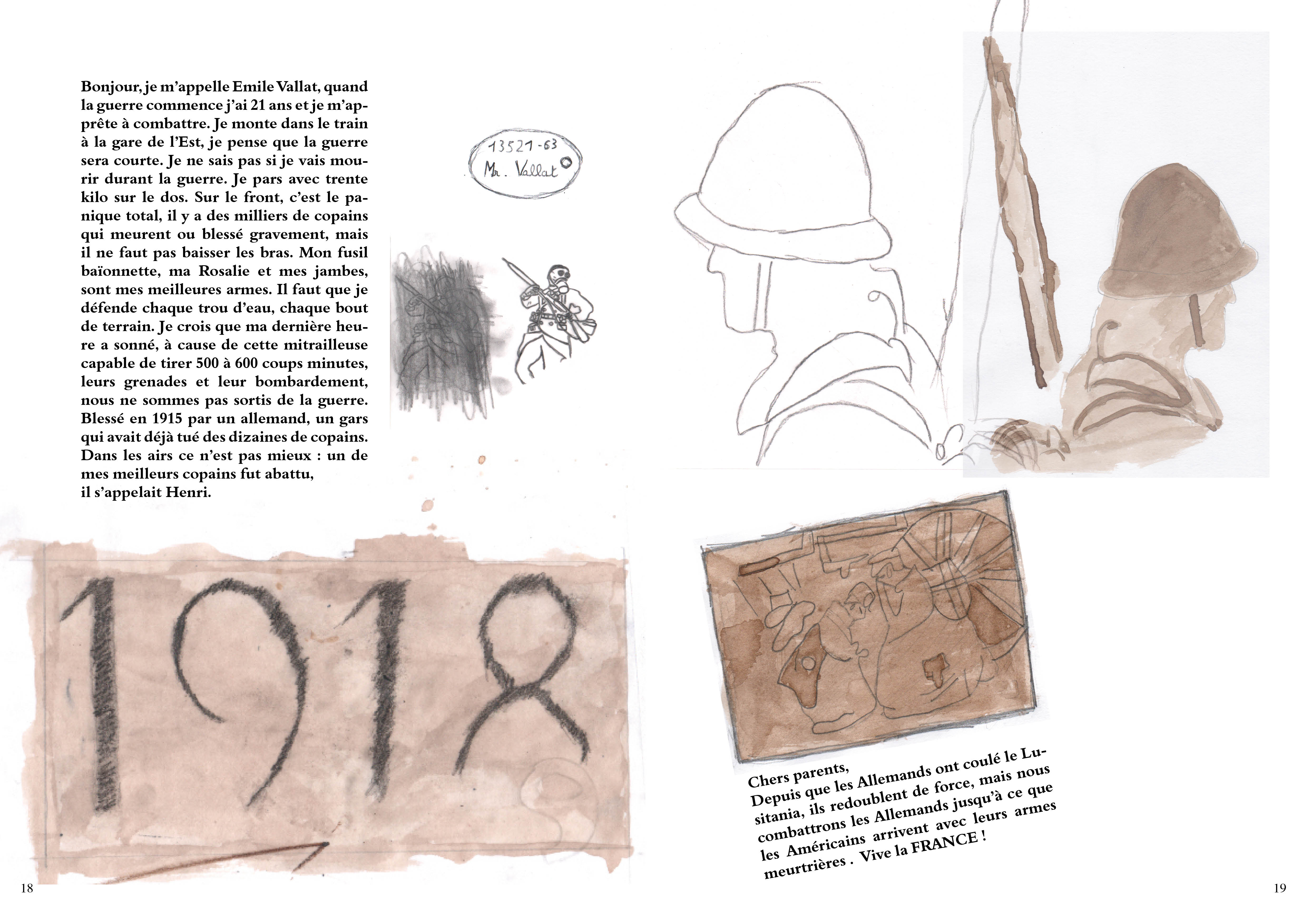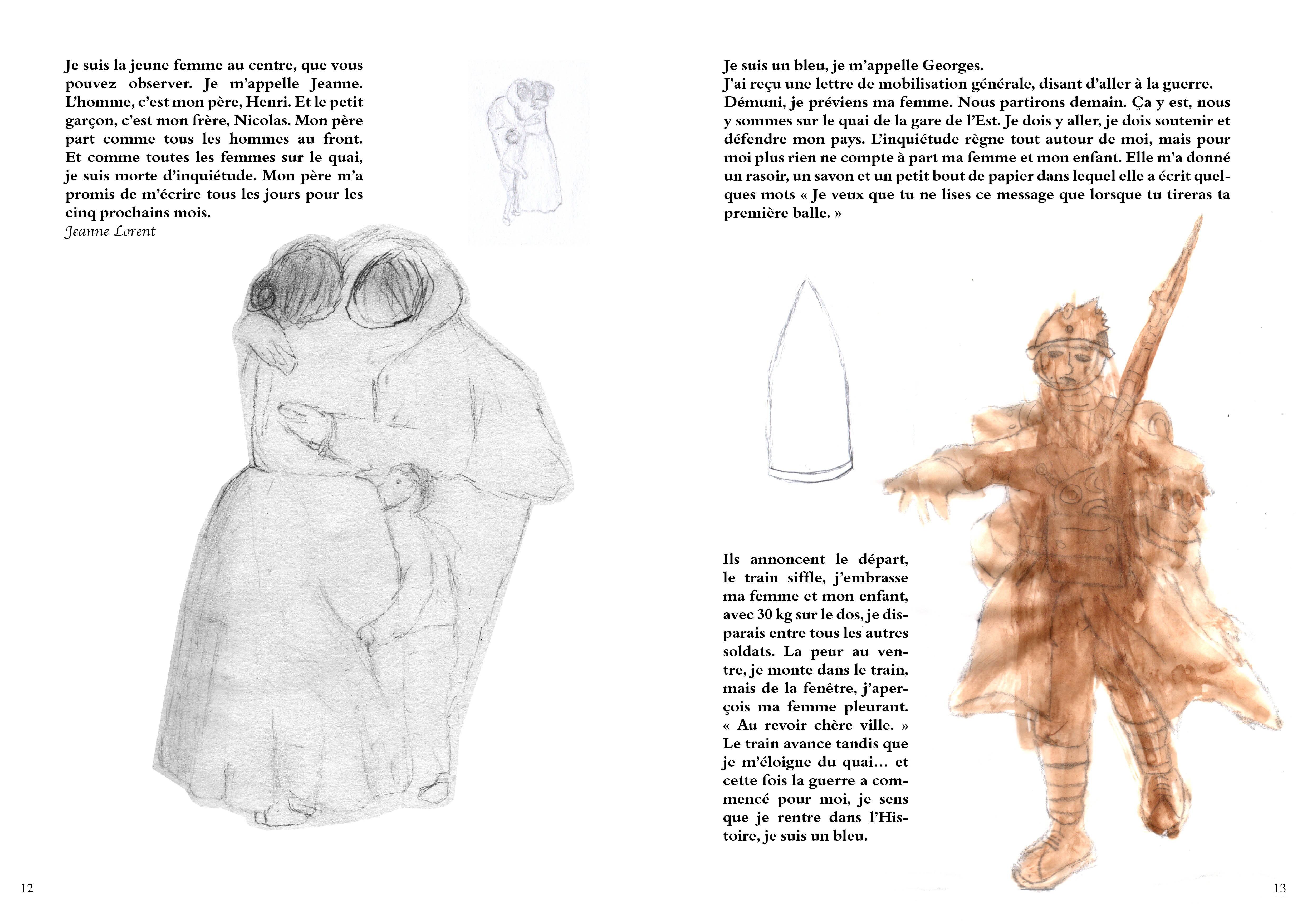 La superposition révèle ce que le texte ne dit pas. La mise en page de ces différents dessins aux couleurs sépias, emmène le lecteur dans un jeu de pistes où chacun pourra s’identifier. Pour se souvenir des destins de ces hommes et femmes si proches de nous grâce à ce livre.
