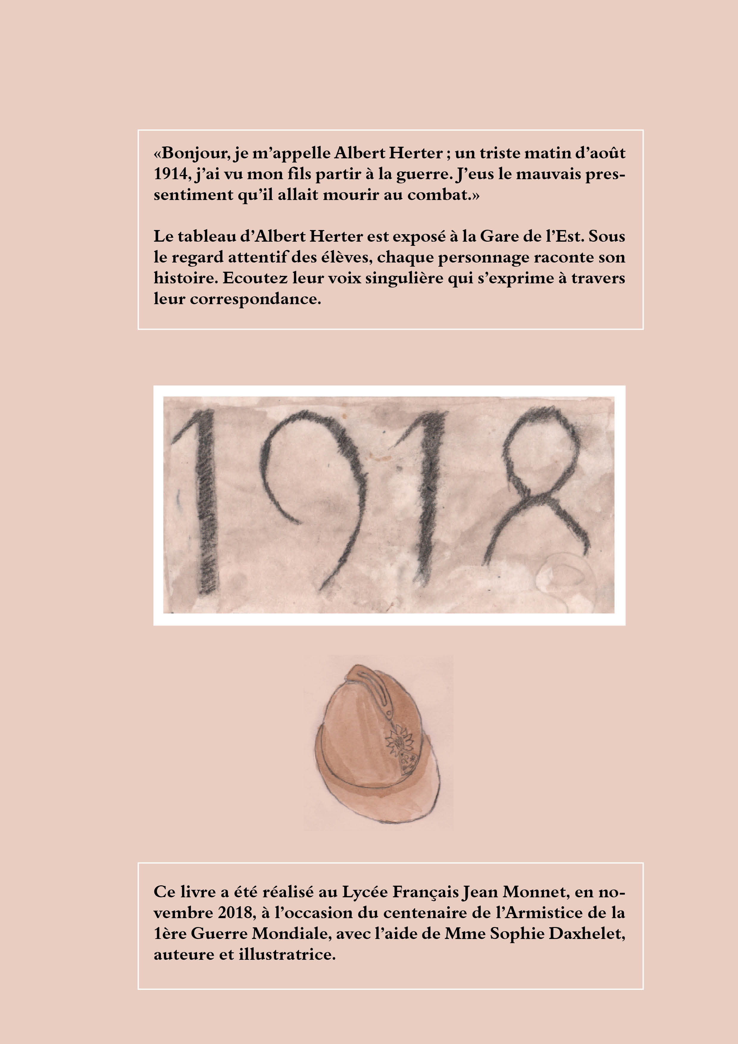 Ce livre a été réalisé au Lycée Français Jean Monnet, en novembre 2018, à l’occasion du centenaire de l’Armistice de la 1ère Guerre Mondiale (avec les élèves de Mme Claude Botella).