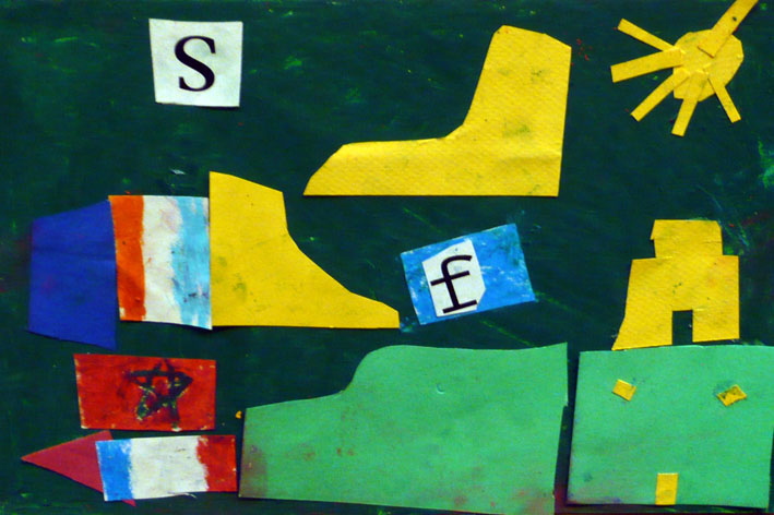 Les photographies de travaux d’élèves ont été prises lors des séances organisées dans des écoles de Molenbeek (Bruxelles).