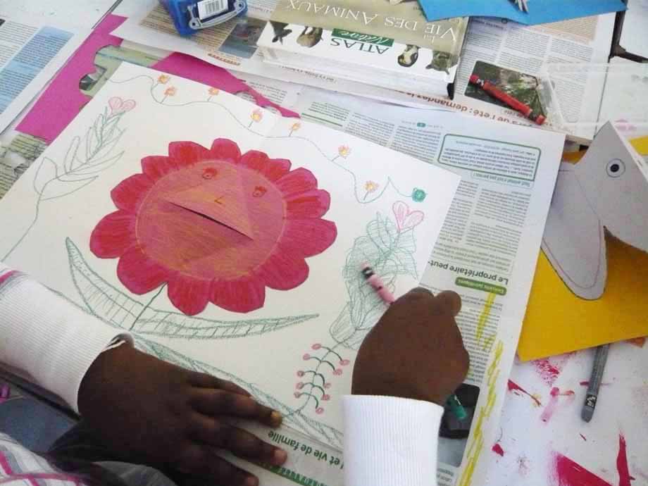 We collect small things found on our way that will be used as clues and souvenirs thereafter. Children develop their views, their observations and then express what they want to tell.At the end of the course, children hold their books. Each is of course different and personal. It can be a travel book in their neighbourhood, the story of an invented hero, an imaginary herbarium, a book of characters encountered at the street corner… because through this idea of telling the story of my town, I’m also telling about myself.