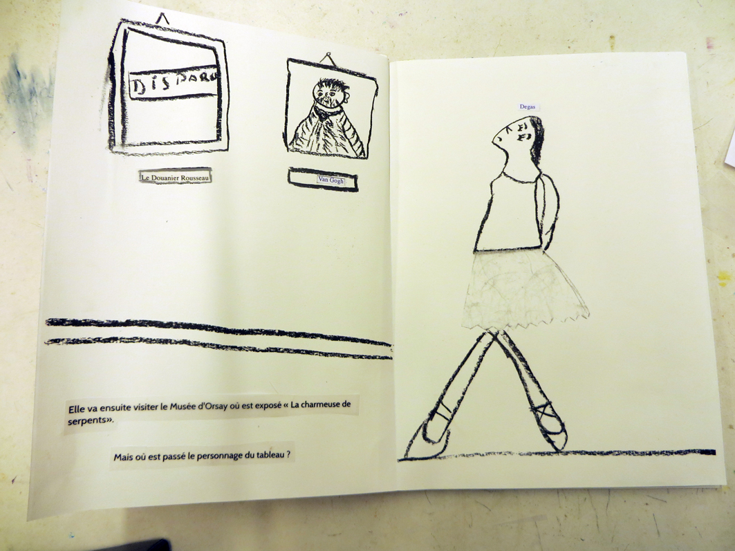 Based upon the book “Sortie de joueur”, every child will choose a painting he recognizes in the pages. Let’s make up a travel story !