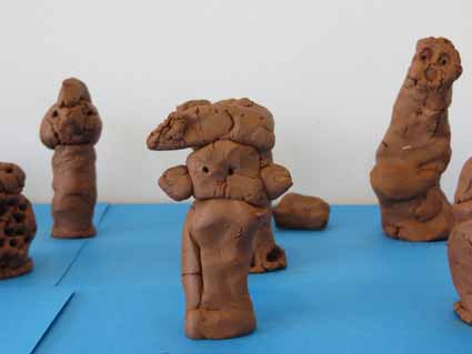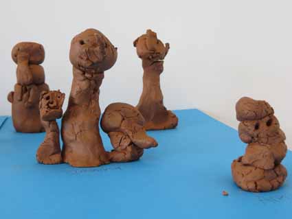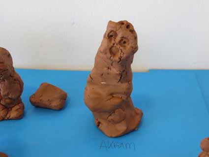 Manufacturing of masks, drawings of animals of Africa in stencils and in pastels, graphics from “wax”, loincloths, statuettes in clay inspired by the statuary of Niger…