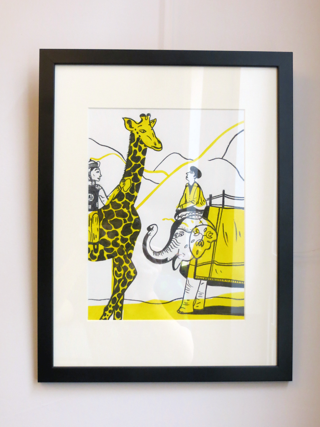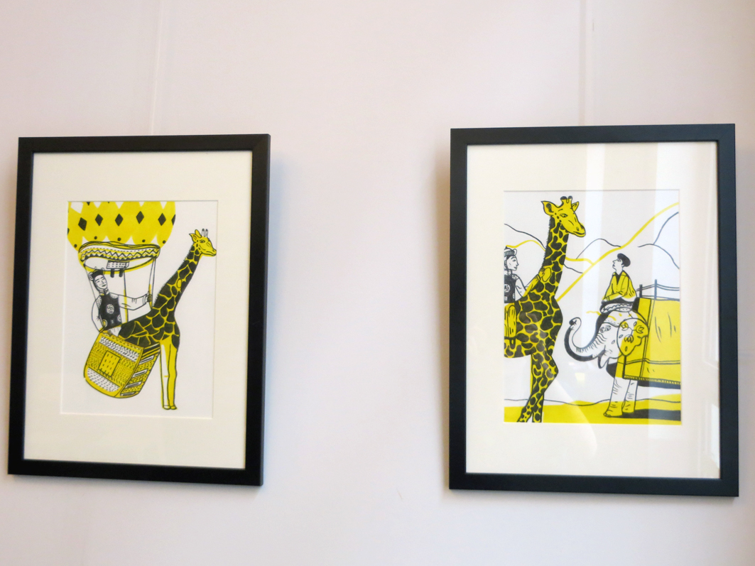 Illustrations of the book are in charcoal, with soft, clean lines, contrasting with touches of yellow gouache paint.