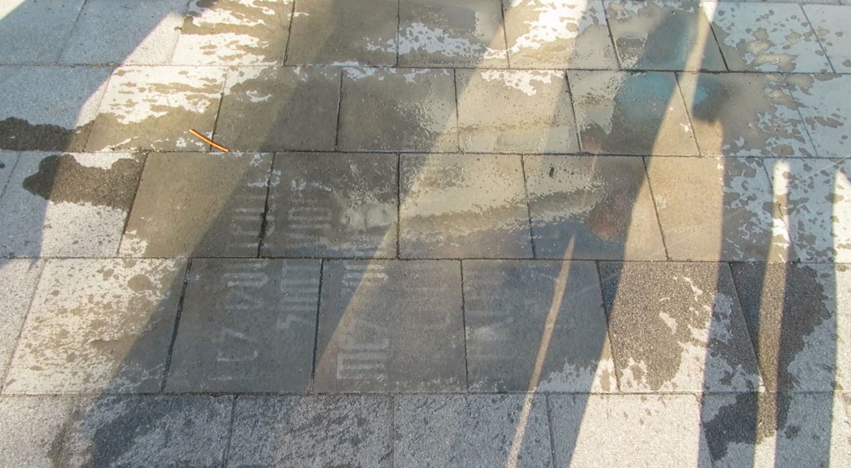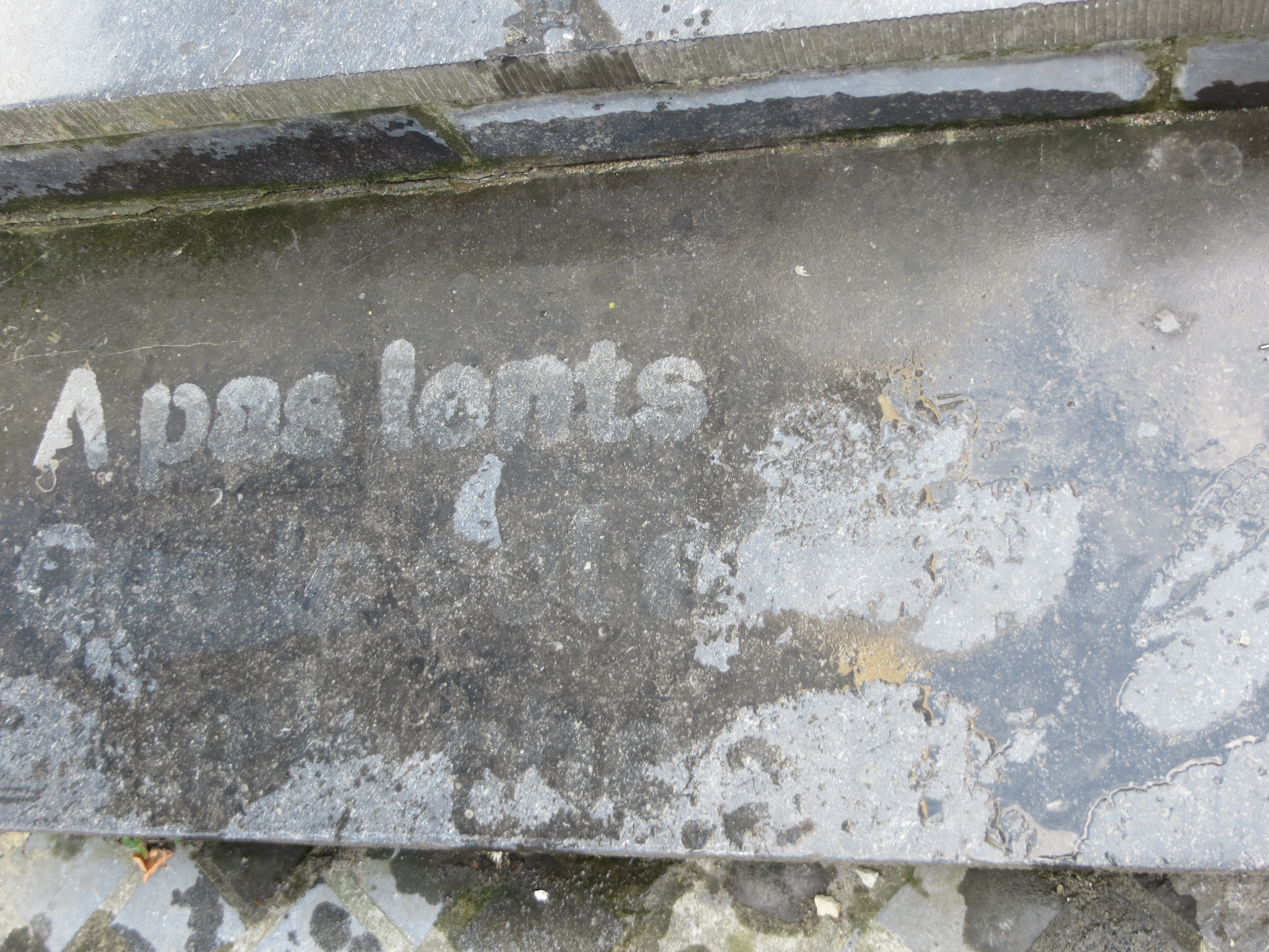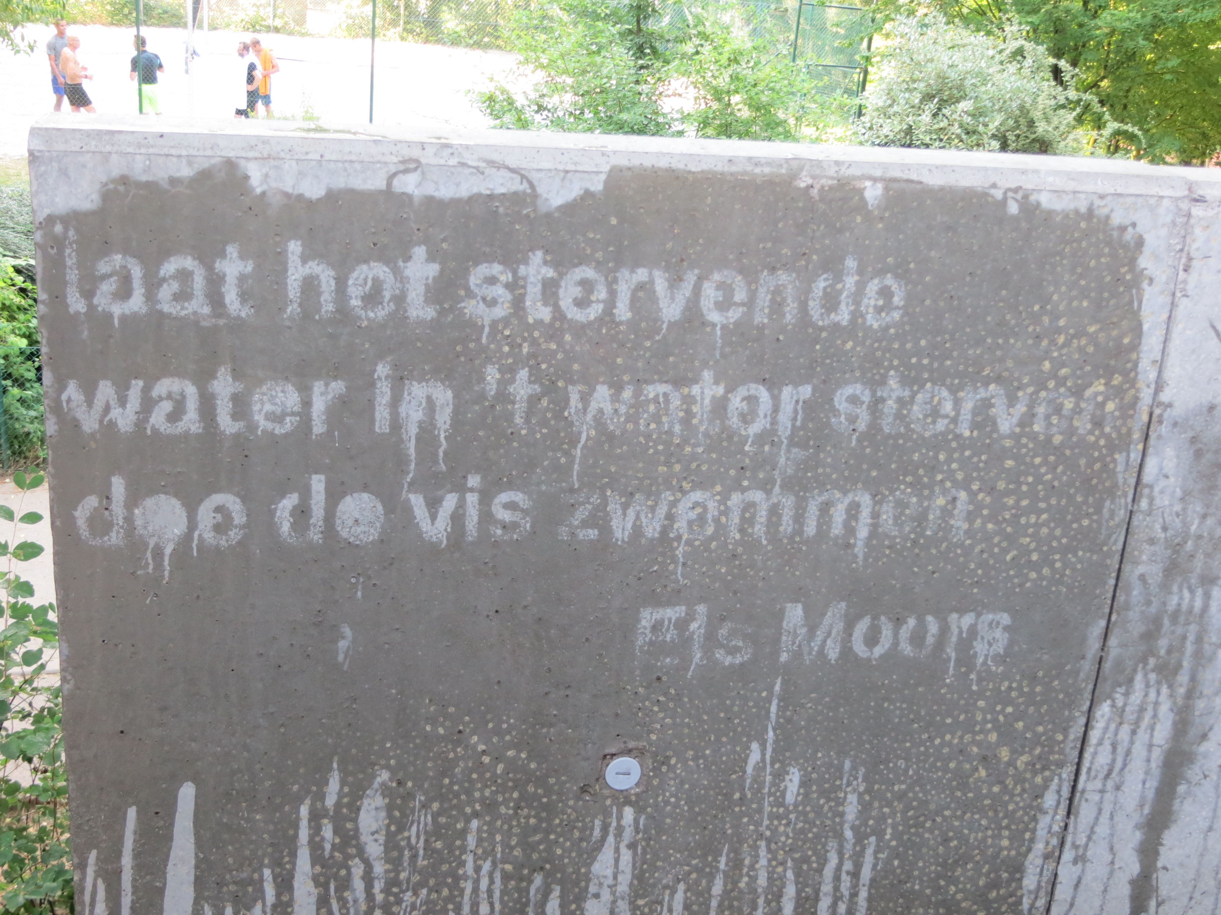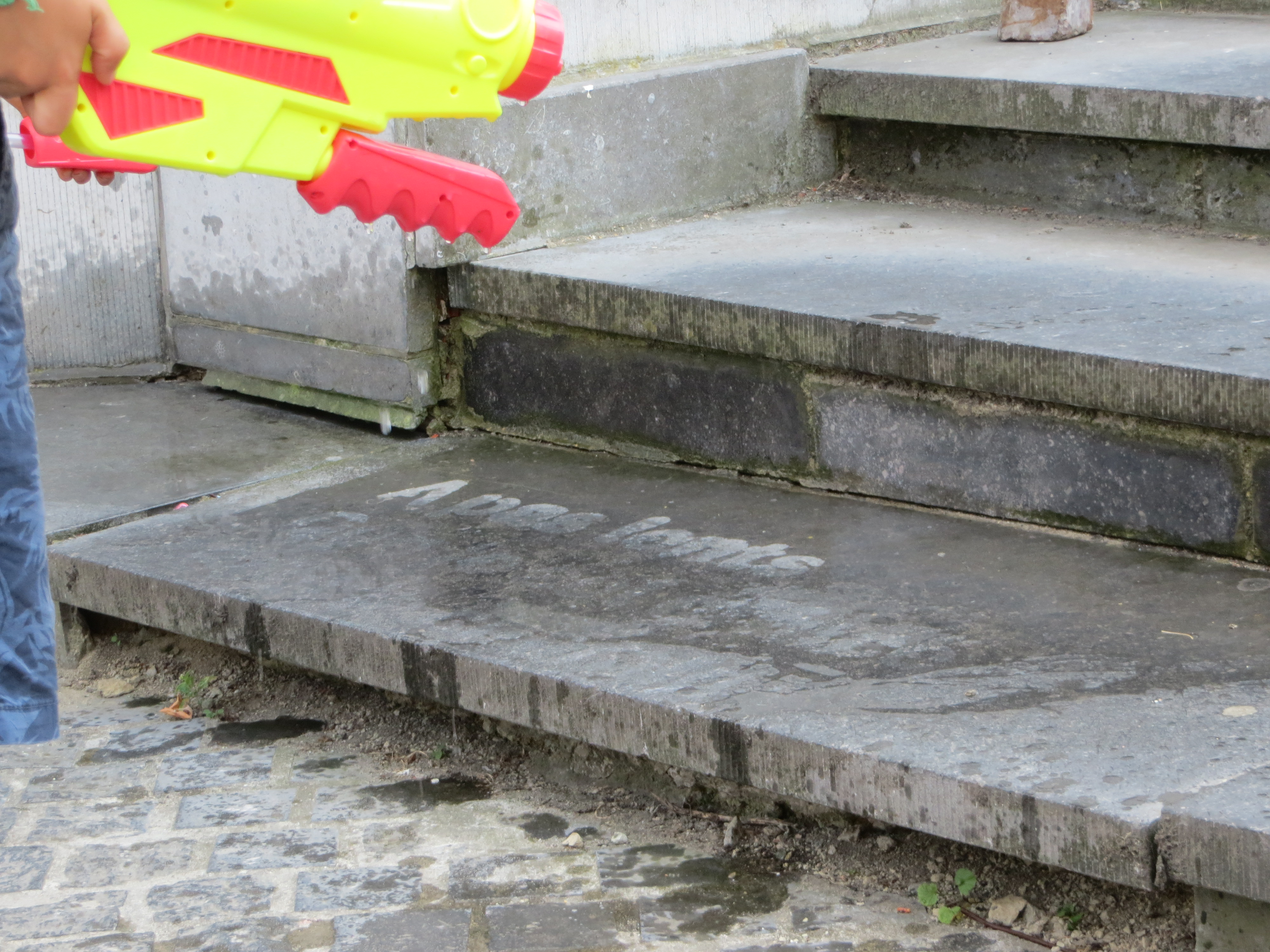 À l’aide d’un spray devenant visible uniquement au contact de l’eau, de pochoirs, et de pluie, une dizaine de poèmes ont été placés sur le territoire de Watermael-Boitsfort.