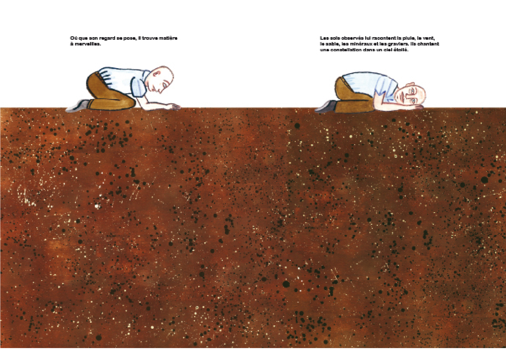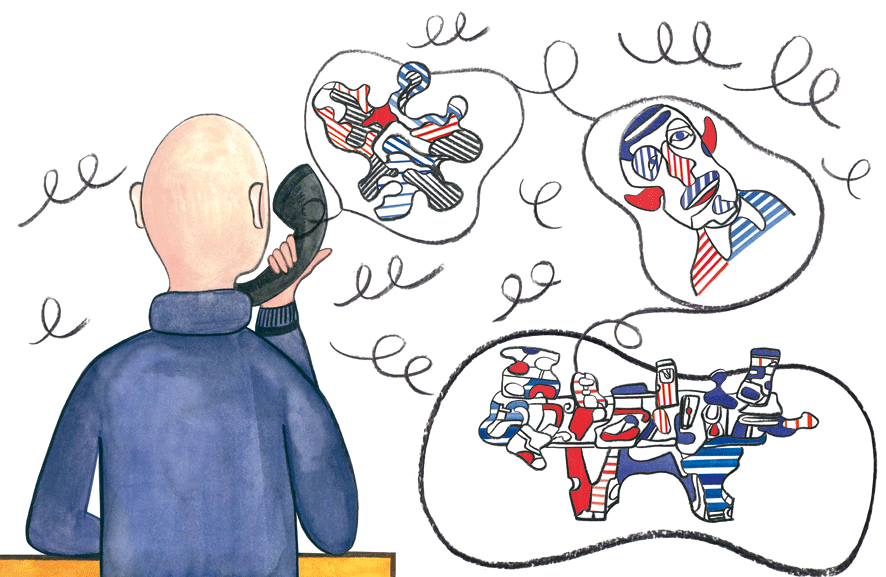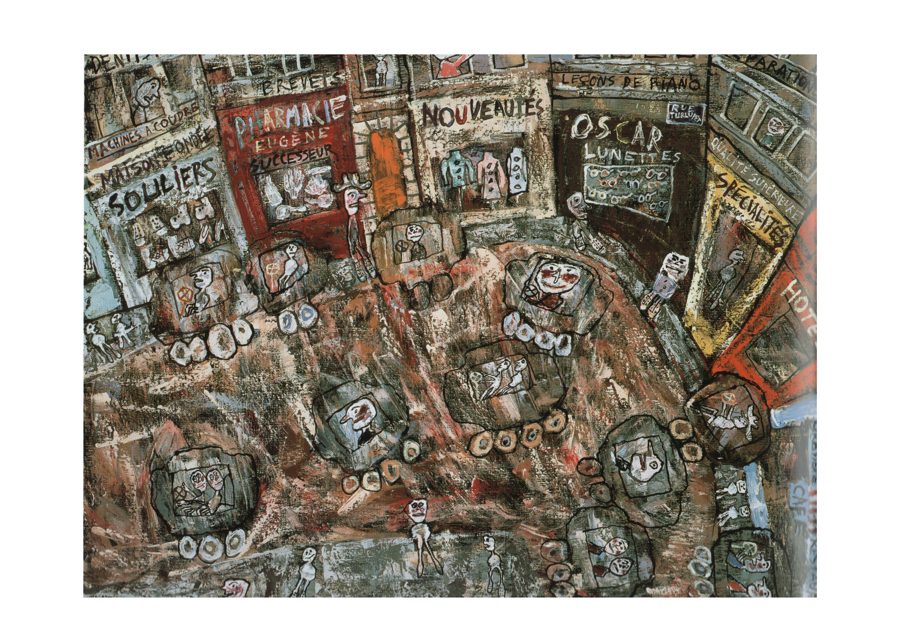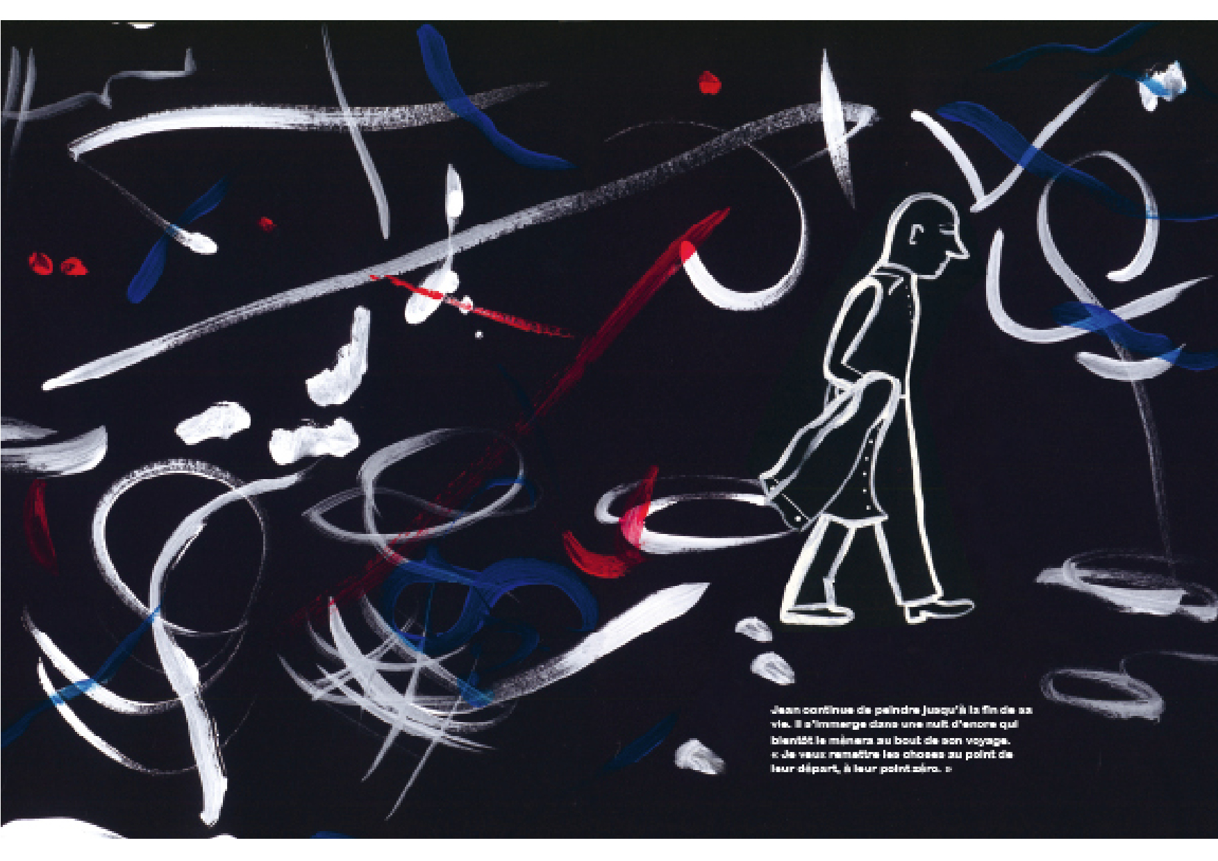 Au pas de course, suivons Jean Dubuffet dans son atelier. Il y voyage, vagabonde, crée toutes sortes de mirages.