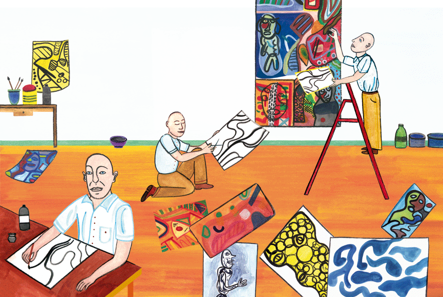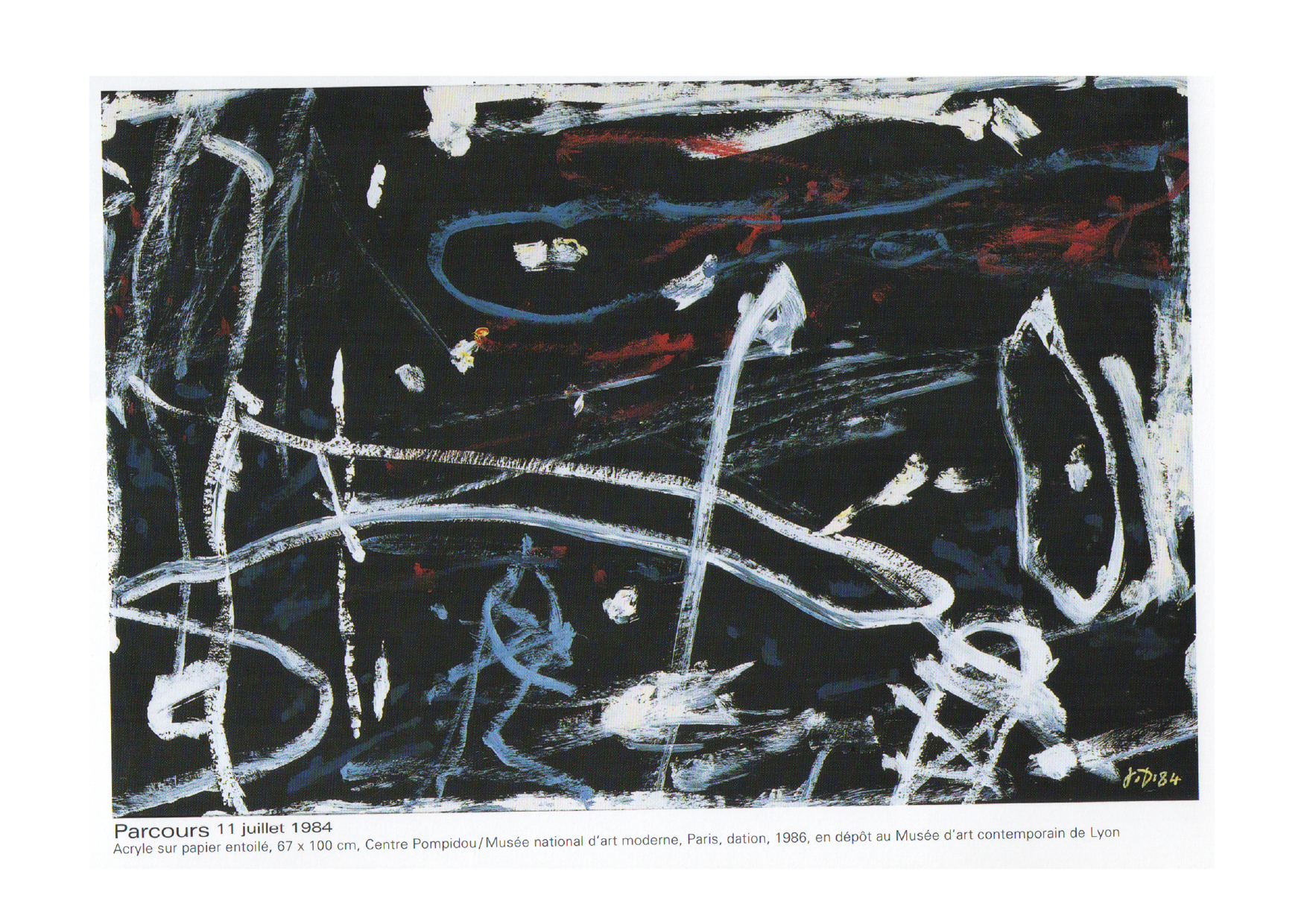 Du métro à ses amis écrivains, du macadam aux papillons, tout l’inspire. L’artiste triture, malaxe, projette peintures et matières.