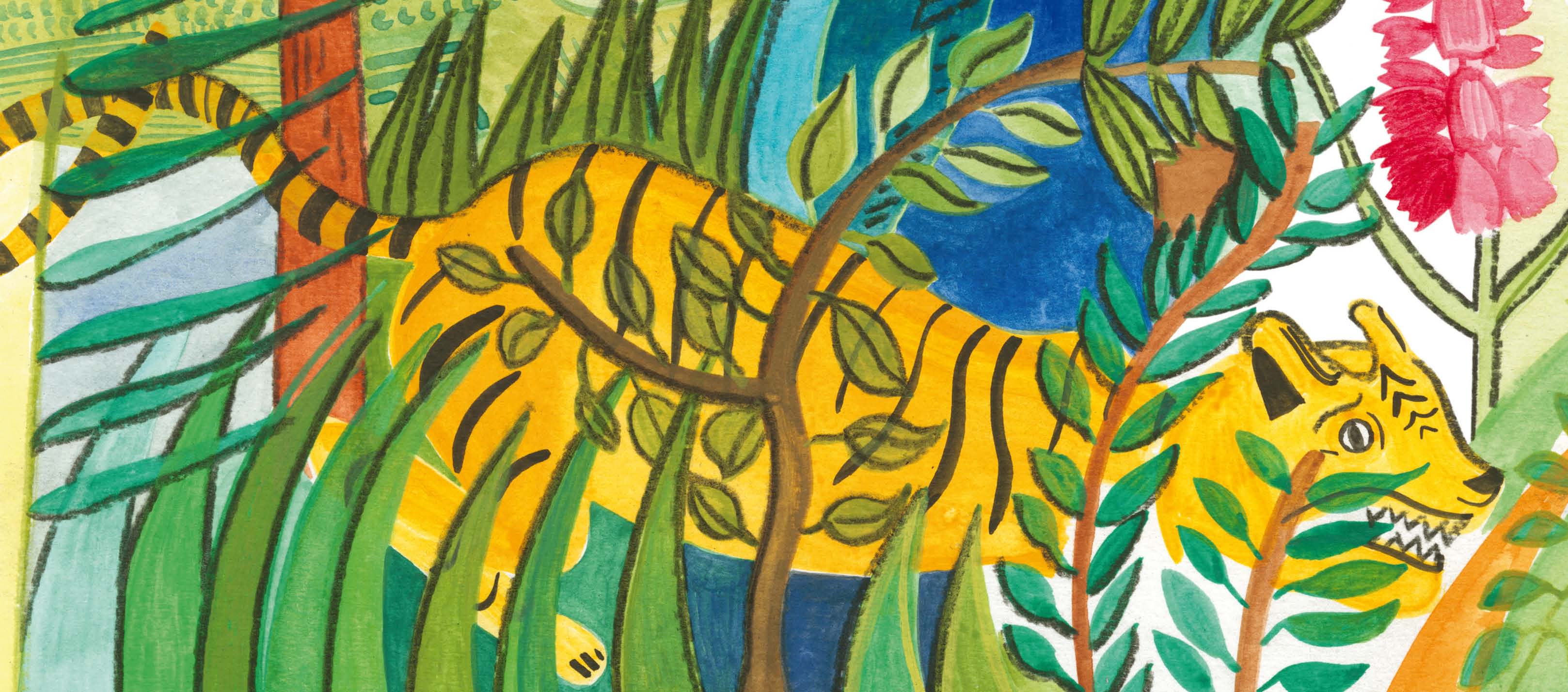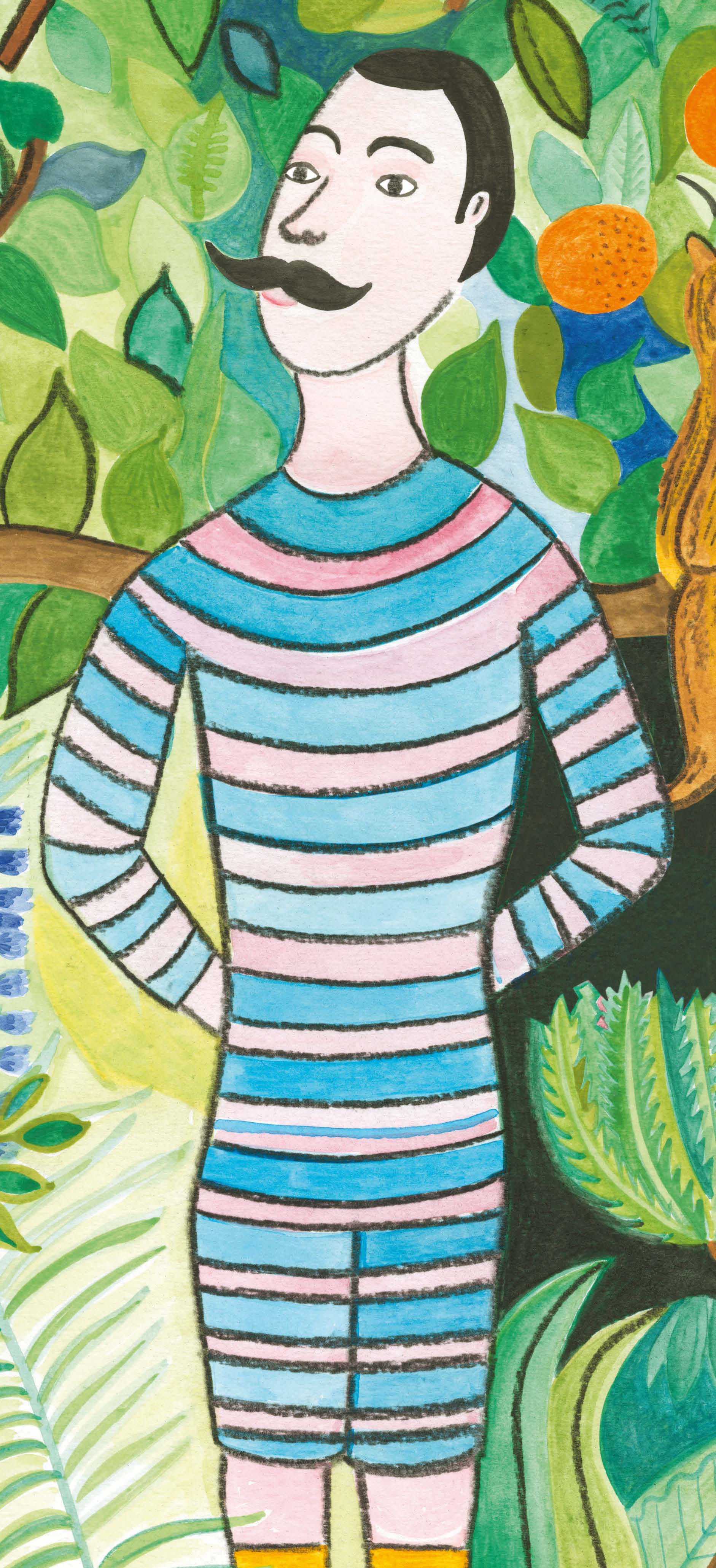 Les dessins présentés ci-dessous sont inspirés par les oeuvres du Douanier Rousseau. Ils sont parsemés dans l’album, comme autant de clins d’oeil au connaisseur ou à celui en passe de l’être. L’idée étant de rendre hommage à l’artiste tout en donnant envie de découvrir ses tableaux.
