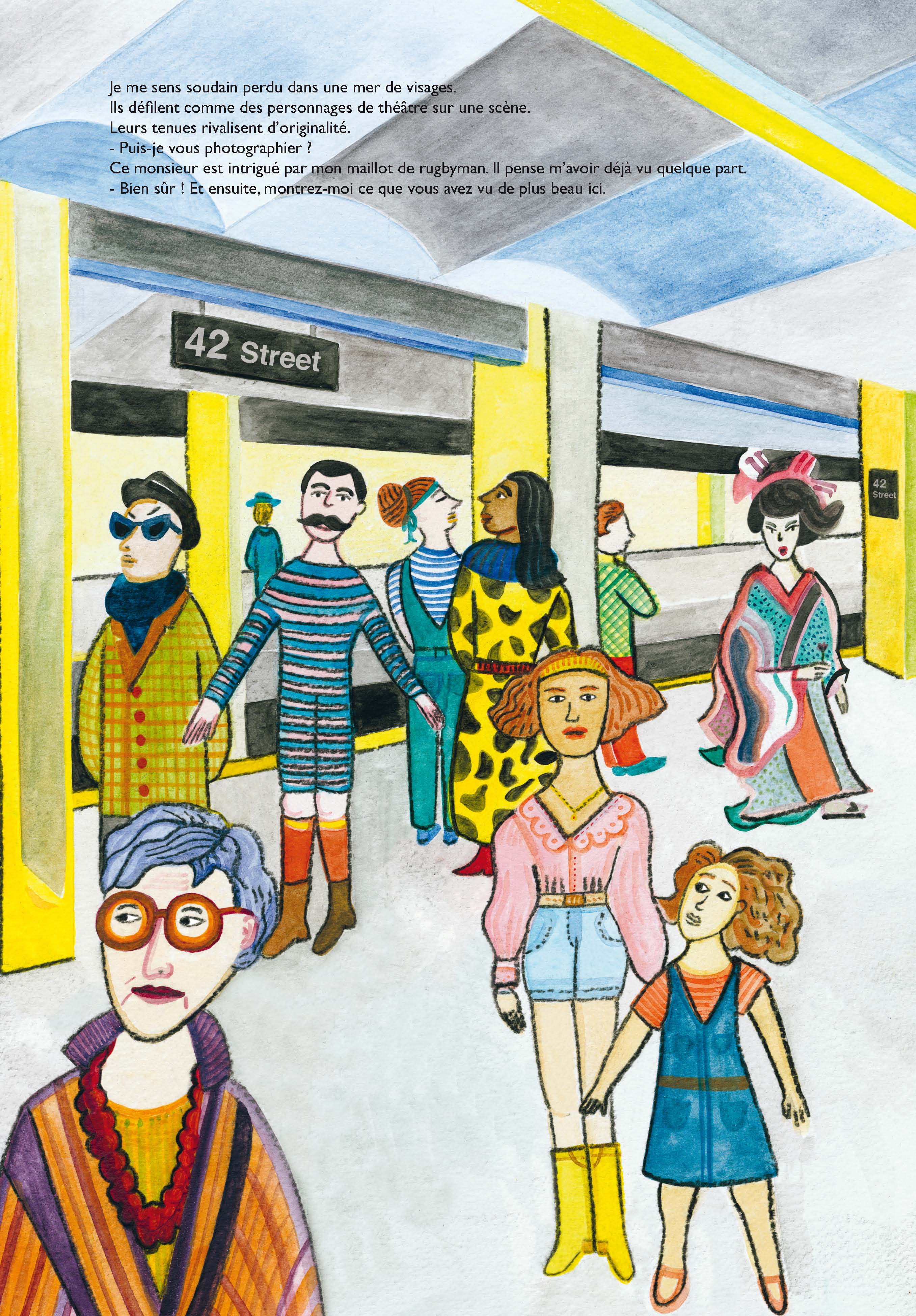 il rencontre une impressionnante palette de personnages et de paysages. Un bel hommage à l’univers du Douanier Rousseau et à New-York.