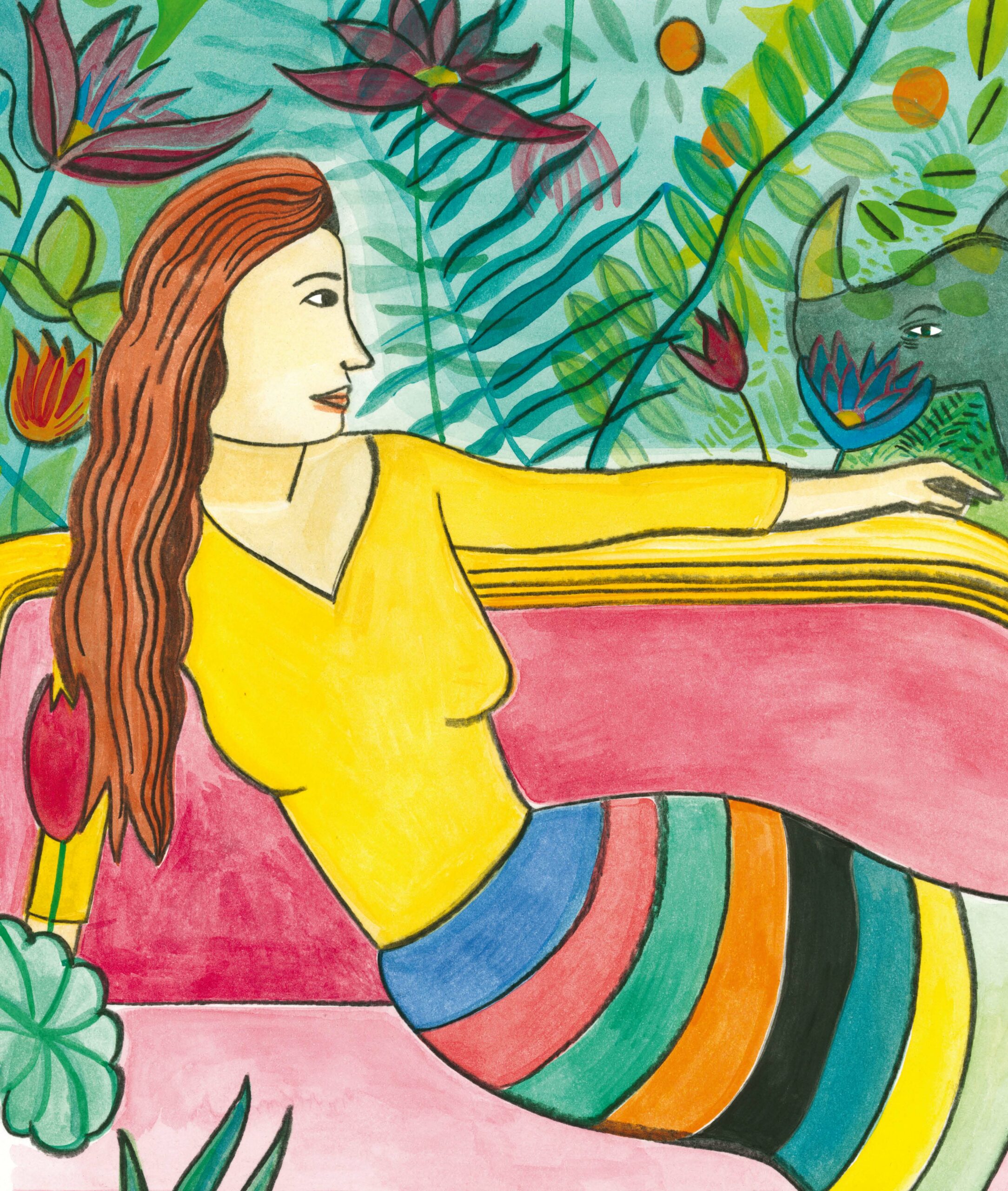 Et si un des personnages s’échappait du tableau pour entamer une déambulation dans la ville, telle fut l’idée initiale. Deux univers se rencontrent et l’amusement est de découvrir où les routes se croisent ou au contraire où se créent des anachronismes. Pour autant, le Douanier Rousseau qui se passionnait pour la ‘modernité’, incarnée à son époque par la toute neuve Tour Eiffel et les premiers avions, n’aurait peut-être pas désapprouvé cette incursion dans la cité aux hautes tours, un autre genre de jungle…